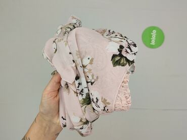 Bluzka damska z cienkimi ramiączkami, ozdobiona białym koronkowym wykończeniem wokół dekoltu. Na całej powierzchni bluzki widnieje wzór kwiatowy w odcieniach różu, czerwieni i brązu. Dolna część bl...