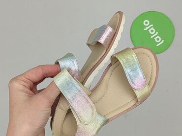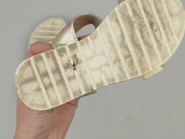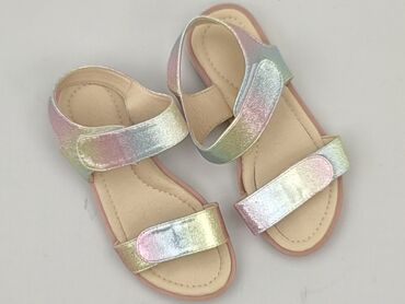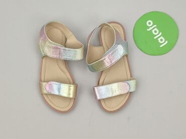 Dziecięce sandały F&F z brokatem - Rozmiar: UK 4.5 / EU 21 (US 5?) – oznaczenie widoczne na wkładce - Kolor: pastelowy róż z efektownym, perłowo‑tęczowym brokatem - Zapięcie: pasek na rzep z ozdob...