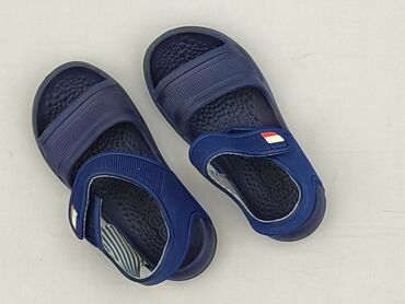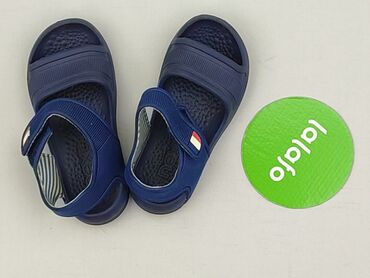 Sandały dziecięce granatowo‑niebieskie z rzepami - Model: letnie sandały z paskami na rzep - Kolor: odcienie niebieskiego/granatu - Zapięcia: potrójne rzepy (na podbiciu, przy palcach i wokół kost...