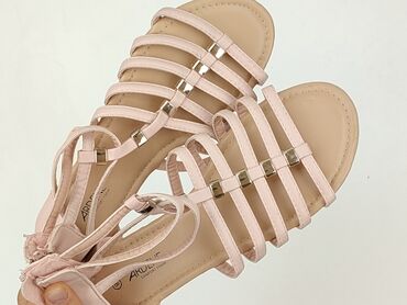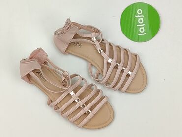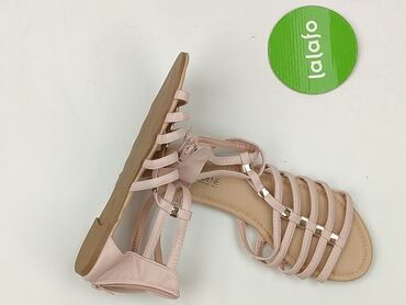 Sandały damskie z paskami - Model: płaskie sandały z cienkimi paskami - Kolorystyka: róż pudrowy, beż/oliwka oraz biel w fakturę jaszczurki - Cholewka: wielopaskowa z dekoracyjnym, przeplatanym el...