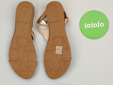 Sandały damskie japonki, rozmiar 37 - Kolor: koniakowy brąz z metalicznymi, złotymi paskami - Cholewka: paseczki w stylu T-bar, ozdobne metaliczne rurki, skórzane elementy i przelotki - Zapięcie: ...