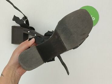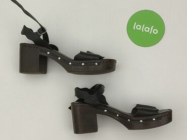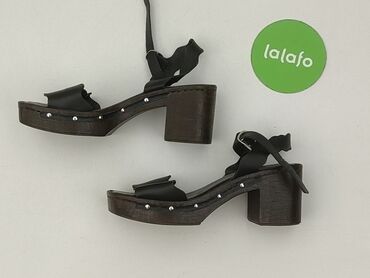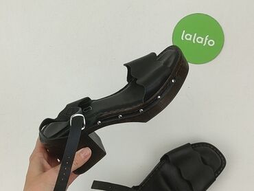 - Podeszwa i platforma: masywna, w wyglądzie drewna, ozdobiona metalowymi nitami po bokach