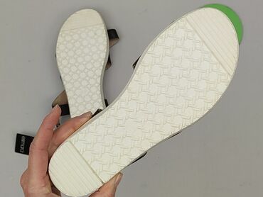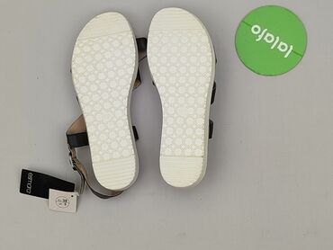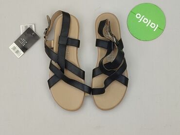 Sandały damskie Esmara - Rozmiar: EU 37 (UK 4 – oznaczenie na wkładce) - Kolor: karmelowy/brązowy z metalicznymi, złotymi lamówkami - Cholewka: dwa szerokie paski na przodzie + pasek za piętą - Za...