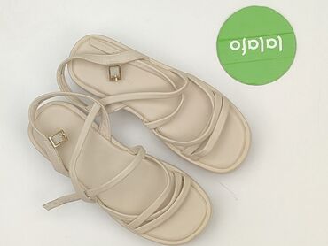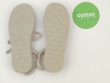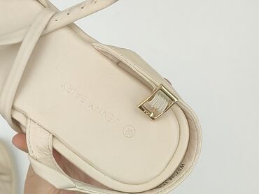 Sandały damskie na obcasie Jenny Fairy - Rozmiar: 37 (oznaczenie wewnątrz) - Kolor: beż/piaskowy - Model: open toe, pasek wokół kostki z klamerką - Materiał wierzchni: zamszopodobny - Wyściółka: b...