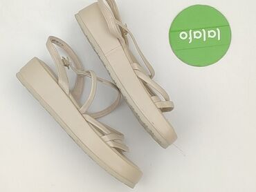 Sandały na koturnie Jenny Fairy - Rozmiar: 39 (oznaczenie na podeszwie) - Model: sandały damskie na wysokim koturnie - Kolor: złoty/champagne - Cholewka: paski z efektem skóry węża - Zapięcie: ela...