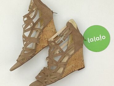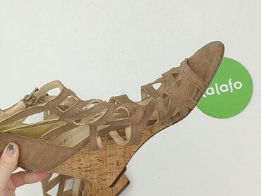 Sandały damskie LASOCKI na koturnie - Rozmiar: 40 (oznaczenie na podeszwie) - Model: peep toe z marszczeniami z przodu - Materiał cholewki i wkładki: skóra naturalna (sygnet „real leather” na wkła...
