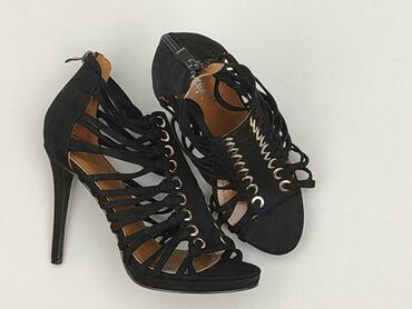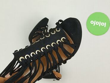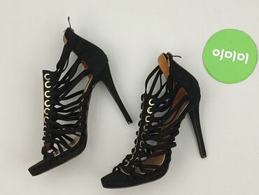 Czarne sandały na szpilce BLESS – damskie - Rozmiar: 41 (oznaczenie na podeszwie) - Typ: sandały na wysokim obcasie/szpilce - Kolor: czarny - Cholewka: połączenie zamszopodobnych pasków i transpar...