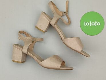 Sandały na obcasie damskie - Kolor: camel/jasnobrązowy - Rozmiar: 36 (oznaczenie na podeszwie) - Cholewka: materiał zamszopodobny - Wyściółka: gładka, jasna - Obcas: smukły szpilkowy, ok. 9–10 cm ...