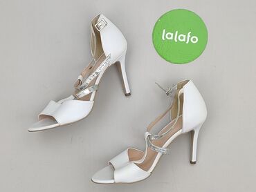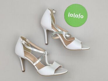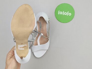 Sandały damskie ARRADO na obcasie - Model: klapki/sandały na szpilce - Rozmiar: 37 (oznaczenie na podeszwie) - Kolorystyka: odcienie kremu, beżu i brązu; metaliczne akcenty - Materiał wierzchni: s...