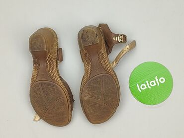Sandały damskie Goodflexx, rozmiar 38 - Model na koturnie o umiarkowanej wysokości; stabilna, lekko profilowana podeszwa dla wygody na co dzień. - Cholewka z pasków w odcieniu brązu z metalicznym ...