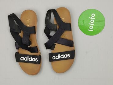 Sandały damskie na rzepy - Kolor: czarny (cholewka i wkładka), podeszwa biała - Rozmiar: 37 (oznaczenie na podeszwie) - Zapięcie: regulowane paski na rzepy przy palcach i wokół kostki – łatwe dopa...Stan: