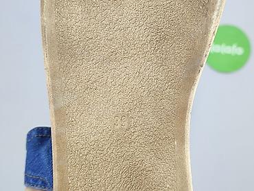 - Podeszwa/koturn: w kolorze złoto-beżowym, z fakturą przypominającą drewno; stabilna, lekko podwyższona