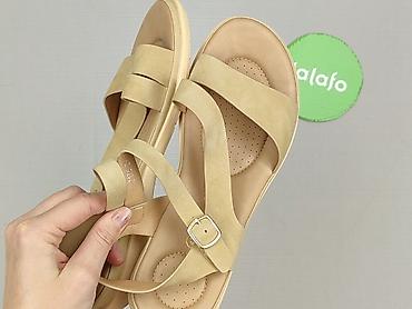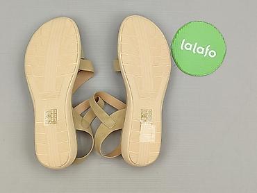 Damskie sandały/klapki z szerokimi paskami - Rozmiar: 41 (widoczny na wkładce) - Typ: płaskie klapki z krzyżującymi się szerokimi paskami - Kolorystyka: beżowa podeszwa z plecioną fakturą; kremowe...