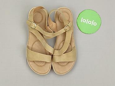 Sandały damskie na koturnie - Model: sandały z krzyżującymi się paskami - Kolor: beżowy/nude - Koturn: pleciony, w stylu espadryli - Zapięcie: regulowany pasek ze sprzączką przy kostce - Nosek: ot...