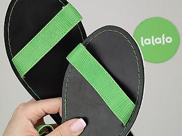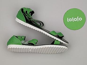 Sandały damskie w kolorze intensywnej zieleni, rozmiar 38. - Model: płaskie sandały z paskiem na palcach i zabudowaną piętą - Zapięcie: podwójna klamra przy kostce - Cholewka: tworzywo z tłoczenie...