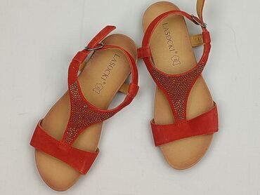 Sandały damskie Lasocki - Rozmiar: 37 - Kolor: intensywna czerwień - Materiał: skóra naturalna (oznaczenie na wkładce) - Model: pasek T z ozdobnymi, błyszczącymi kryształkami - Zapięcie: sprzączka...