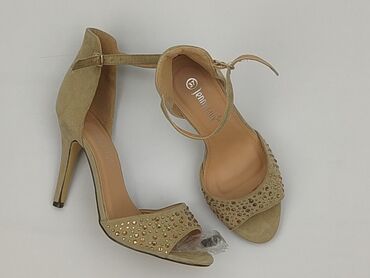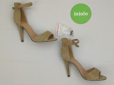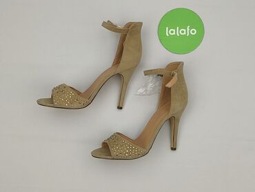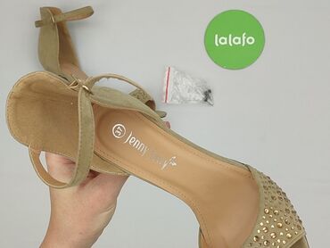 Sandały na koturnie Jenny Fairy - Rozmiar: 39 (oznaczenie na podeszwie) - Model: sandały damskie na wysokim koturnie - Kolor: złoty/champagne - Cholewka: paski z efektem skóry węża - Zapięcie: ela...