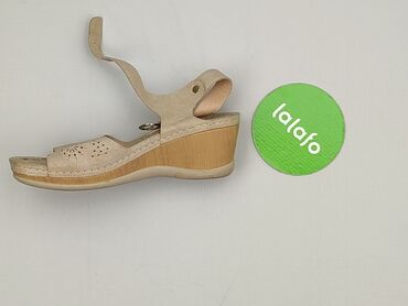 Sandały damskie LASOCKI na koturnie - Rozmiar: 40 (oznaczenie na podeszwie) - Model: peep toe z marszczeniami z przodu - Materiał cholewki i wkładki: skóra naturalna (sygnet „real leather” na wkła...