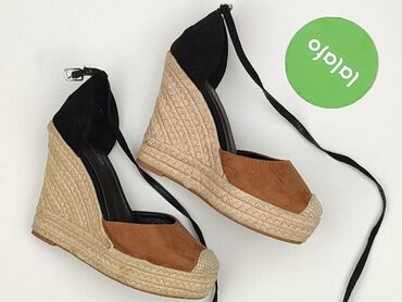 Sandały na koturnie – espadryle damskie - Rozmiar: 37 (oznaczenie na podeszwie) - Kolor cholewki: ciepły odcień brązu/terrakoty - Materiał cholewki: miękka skóra zamszowa - Nosek: otwarty (peep to...