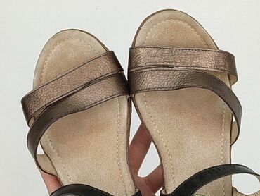Sandały na koturnie – espadryle damskie - Rozmiar: 37 (oznaczenie na podeszwie) - Kolor cholewki: ciepły odcień brązu/terrakoty - Materiał cholewki: miękka skóra zamszowa - Nosek: otwarty (peep to...Stan: