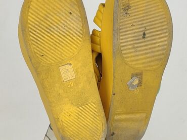 Sandały damskie H&M - Model: płaskie sandały z paskami - Kolor: neonowa limonka/żółty z białymi akcentami - Materiał wierzchni: tworzywo sztuczne (paski), wkładka w kolorze jasnego brązu - Zapięci...
