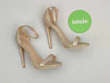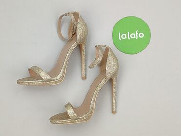 Sandały damskie na słupku – eleganckie, w kolorze różowego złota. - Rozmiar: 37 (oznaczenie na spodzie) - Obcas: wysoki, stabilny słupek - Platforma z przodu dla większego komfortu - Cholewka z po...