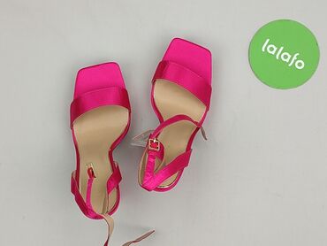 Sandały damskie na słupku – eleganckie, w kolorze różowego złota. - Rozmiar: 37 (oznaczenie na spodzie) - Obcas: wysoki, stabilny słupek - Platforma z przodu dla większego komfortu - Cholewka z po...