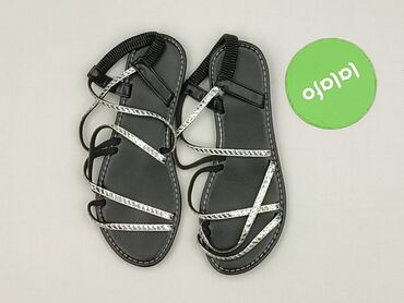 Sandały damskie Graceland – czarne - Rozmiar: 36 (oznaczenie na podeszwie) - Kolor: czarny - Cholewka: pasek z przodu z efektownym, grubym splotem; szeroki pasek na podbiciu - Zapięcie: rzep na pa...