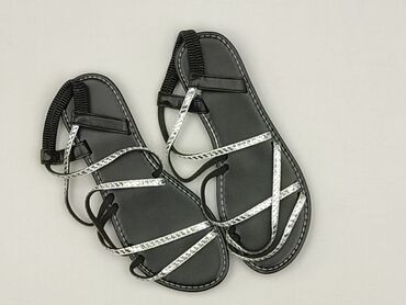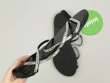 Sandały damskie, rozmiar 41 - Kolor: czarny (paski) z jasną wkładką - Model: płaskie, odkryte palce i pięta - Cholewka: elastyczne, miękkie paski krzyżujące się na podbiciu – dobrze trzymają stopę...Stan: