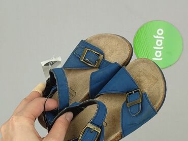 Sandały dziecięce granatowo‑niebieskie z rzepami - Model: letnie sandały z paskami na rzep - Kolor: odcienie niebieskiego/granatu - Zapięcia: potrójne rzepy (na podbiciu, przy palcach i wokół kost...