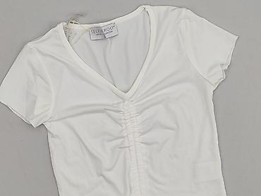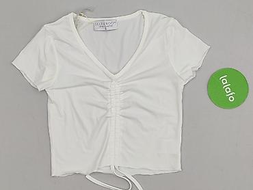 Biała damska bluzka z krótkim rękawem (do łokcia) i okrągłym dekoltem. Gładka, bez nadruków i aplikacji – klasyczny, dopasowany fason. - Rozmiar: S (z metki) - Skład materiału: 95% poliester, 5% e...