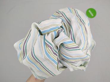 Koszula damska Lustrin, rozmiar M - Wzór: granatowo-białe paski (pionowe i ukośne), efekt lekkiego marszczenia/crinkle - Fason: dłuższa koszula zapinana na guziki, zaokrąglony dół, długi rękaw z m...