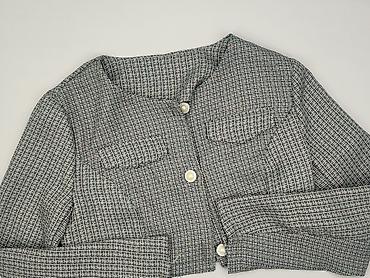 Stylowy, kobiecy żakiet idealny do spódnic z wyższym stanem, sukienek i spodni typu high waist; sprawdzi się do biura i na co dzień. Dla kobiety. Używany. Stan: bardzo dobry.