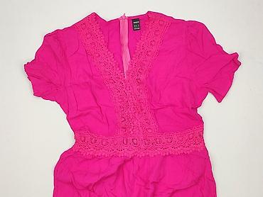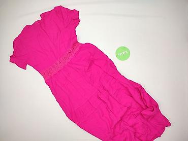 Różowa sukienka damska, rozmiar 40. - Fason: dopasowana u góry, lekko rozszerzana ku dołowi z falbaną/klinami przy dolnej krawędzi - Rękaw: krótki - Dekolt: okrągły - Długość: przed kolano lub do ...