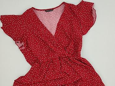 Sukienka damska SHEIN, rozmiar XS (EU 34, US 2). - Kolor: intensywna czerwień w białe groszki - Fason: kopertowy look z falbanami z przodu i przy dole, podkreślają kobiecą sylwetkę - Rękaw: d...