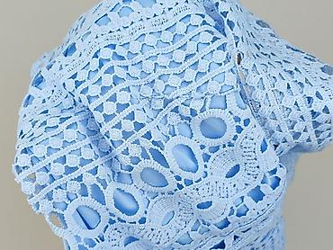 Bluzka damska SHEIN - Kolor: denimowy/niebieski melanż - Krój: luźny, z okrągłym dekoltem - Rękawy: krótkie, ażurowe z koronkową wstawką i dekoracyjną taśmą - Materiał: 72% poliester, 28% wiskoza ...