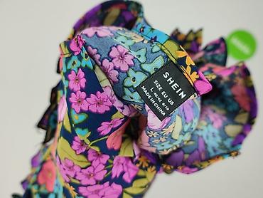 Bluzka damska SHEIN, rozmiar EU 38 (US 6, M). - Wzór: wyrazisty, gęsty print w kolorowe kwiaty (fiolety, żółcie, róże, zielenie) na białym tle. - Krój: koszulowy z kołnierzykiem, zapinana na gu...
