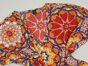 - Wzór: intensywny, geometryczno-kwiatowy print w odcieniach czerwieni, żółci, niebieskiego i beżu