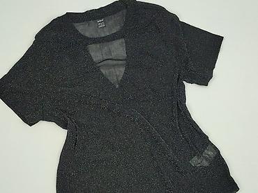 Bluzka damska SHEIN, rozmiar L (EU 40/42, US 8/10). - Kolor: czarny. - Fason: prosty, z krótkimi, rozszerzanymi rękawami typu dzwonek. - Dekolt: kwadratowy/łódkowy z ozdobnym panelowym haftem w ...