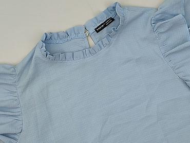 Bluzka damska SHEIN, rozmiar L (EU/USA). - Kolor: jasny błękit - Materiał: 100% poliester - Koronkowa, ażurowa tkanina z bogatym wzorem; część tułowia podszyta gładką podszewką w tym samym kolorze...