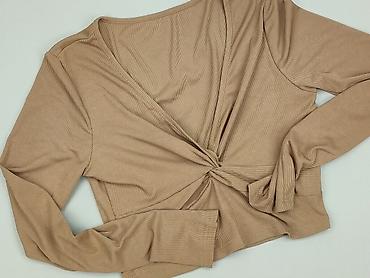 Bluzka damska SHEIN, krótka (crop), z długim rękawem. - Kolor: jasny beż/ecru - Faktura: prążkowana, miękka dzianina - Krój: luźniejsza góra, opuszczona linia ramion, długość do pasa - Dekolt: okr...