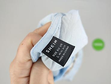 Bluzka damska SHEIN, rozmiar L (EU 40/42, US 8/10). Kolor: jasny błękit. Fason: prosty, z krótkim rękawem zakończonym falbaną oraz subtelną falbanką przy dekolcie. Z tyłu zapięcie na mały guzik...Rozmiar: