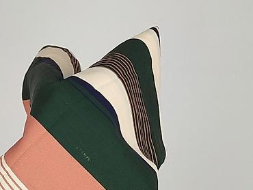 - Wzór: pionowe pasy w odcieniach butelkowej zieleni, ecru, brzoskwini, granatu i beżu; mieszanka szerokich i cienkich linii