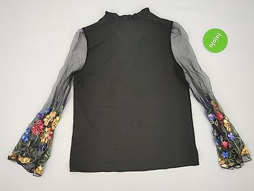 Bluzka damska SHEIN, rozmiar M (EU 38, US 6). - Kolor: czarny - Fason: długi rękaw, lekko wydłużony dół - Dekolt: głęboki, z wszytą wstawką z połyskującej, brokatowej dzianiny (czarne tło z drobnym...