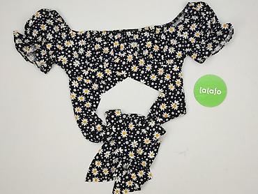 Bluzka damska w kwiaty (stokrotki) – czarna - Krój: krótka, lekko rozkloszowana, w stylu crop top - Dekolt: szeroki, kwadratowy/łódkowy, z elastyczną gumką – można nosić na ramionach lub z opuszcz...Stan: