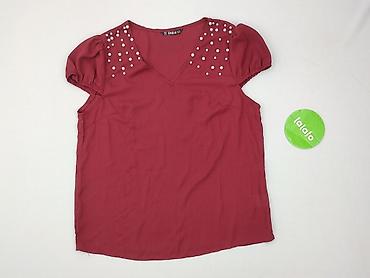 Bluzka damska SHEIN - Model: krótki rękaw, kołnierzyk z rozcięciem w serek (V-neck bez guzików) - Kolor: bordowy/burgund - Rozmiar z metki: L (EU 40/42, US 8/10) - Skład: 93% poliester, 7% elastan...