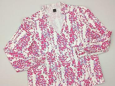 Bluzka damska SHEIN, rozmiar S (EU 36, US 4) - Kolor: biały z wielobarwnym, kwiatowym nadrukiem (róże i gałązki) - Krój: luźniejszy, zaokrąglony dół (lekko dłuższy tył), rękawy długie z delikatnym...