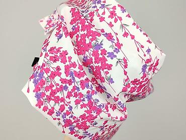- Wzór: kwiatowy nadruk w odcieniach różu i fioletu na białym tle