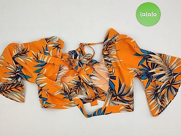 Bluzka damska Pepco – rozmiar EU 42 (UK 14) - Fason: lekko luźny, z dekoltem typu hiszpanka na gumce; cienkie ramiączka i krótkie rękawki z troczkami zakończonymi pomponikami. - Wzór: intensywny, ...