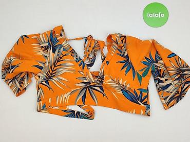 Bluzka damska kopertowa z wiązaniem w talii - Krój: kopertowy, krótszy (cropped), z paskami do przewiązania i dopasowania w pasie - Dekolt: V - Rękaw: krótki, luźniejszy - Wzór: paisley z motywami...Rozmiar: